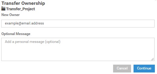 - From your personal account (shown as Personal in the Dashboard) select the run or project you want to transfer, then select Transfer Ownership.