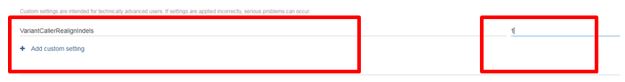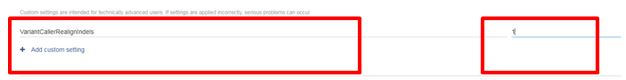 - Enter VariantCallerRealignIndels in the field “Type custom setting here”