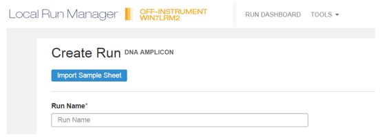 - Select Create Run from the Local Run Manager dashboard and select either DNA Amplicon or RNA Amplicon.