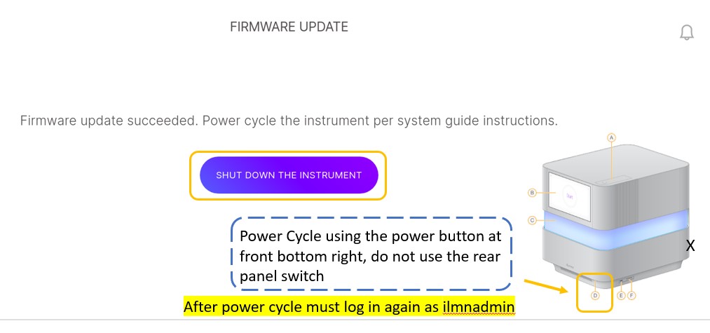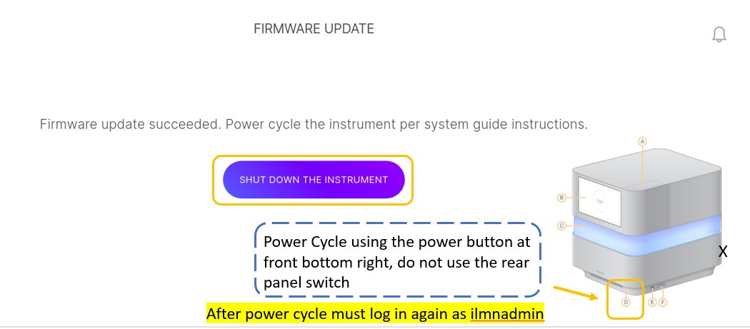 e) 打开仪器并以ilmnadmin身份登录。控制软件将自动启动。