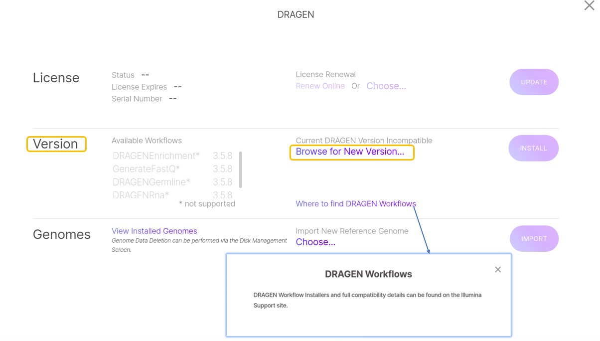 注意:出现警报,指示需要更新DRAGEN workflows。继续执行以下步骤来解除警报。