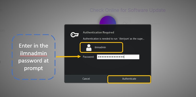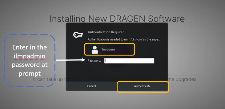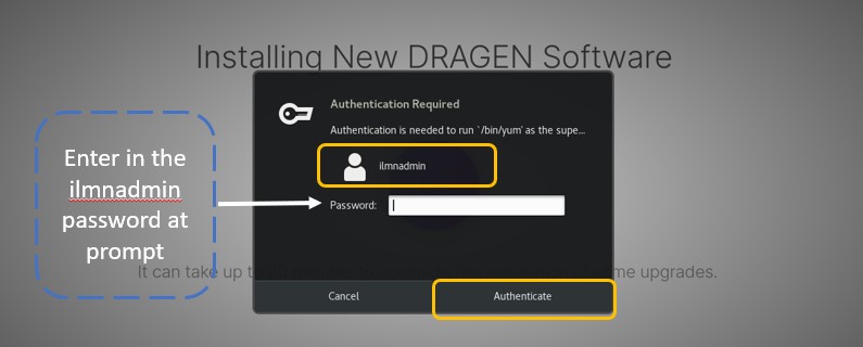 b) 输入ilmnadmin密码并按照提示更新软件套件。