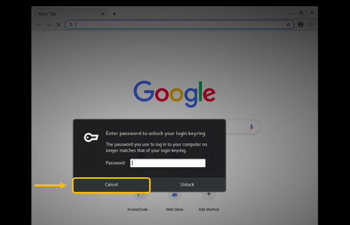 注意:如果启动Chromium之后出现unlock login keyring的提示,请忽略并取消提示