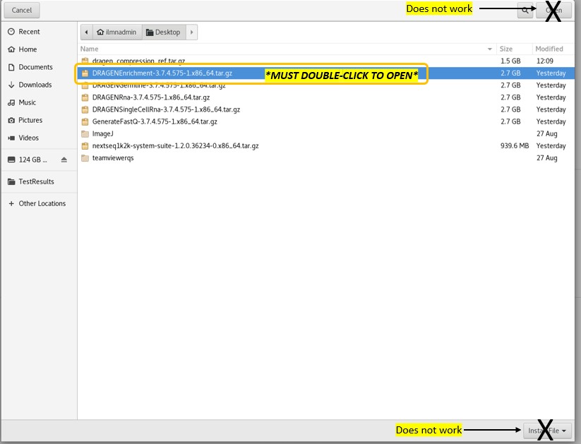 c) 在浏览窗口中选择并双击桌面上的DRAGEN Enrichment workflow *.tar.gz 压缩包。