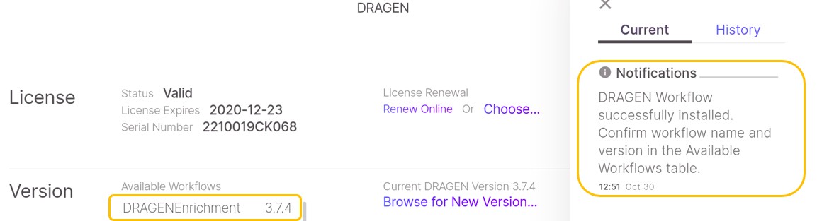 g) 确认安装的DRAGEN Enrichment workflow 版本已更新到3.7.4。