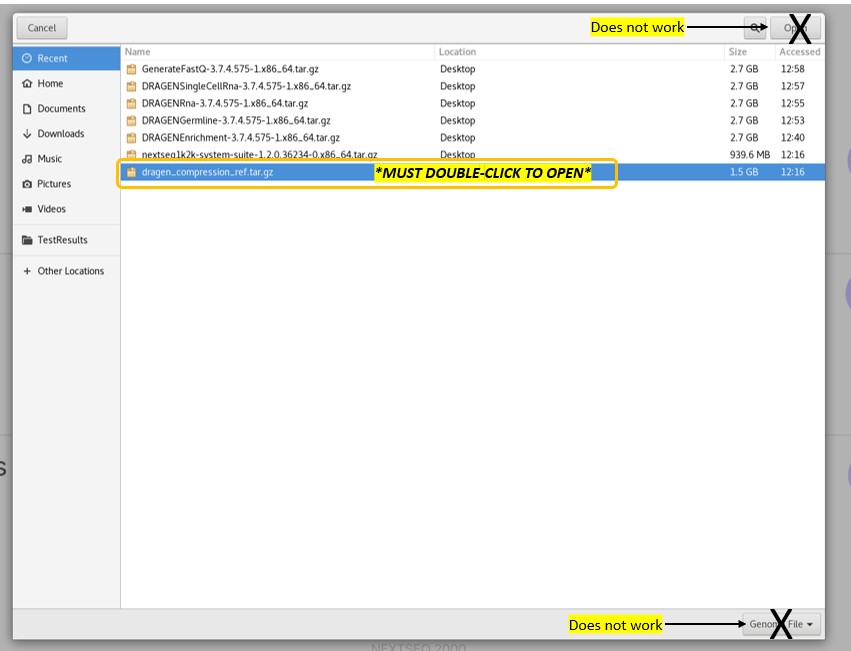 b) 在Genome部分选择Import New Reference Genomes下面的Choose, 找到dragen_compression_ref.tar.gz文件,然后选择Open。