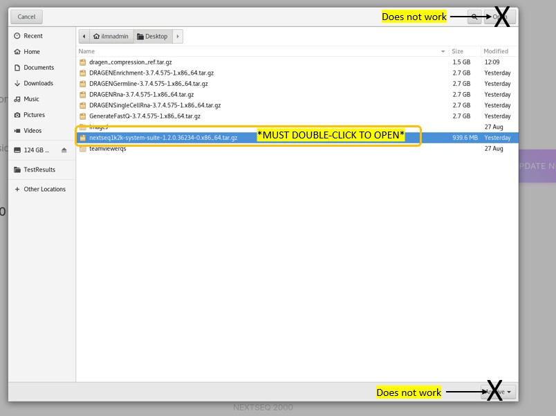 如果要安装DRAGEN Enrichment v3.7.4,必须首先按照此处概述的步骤将NextSeq 1000/2000控制软件更新为v1.2。