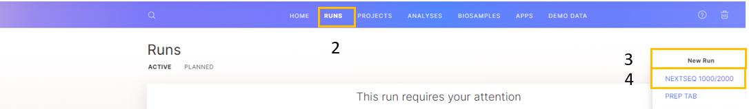 - When run set up is complete, and the run shows in the planned runs list in BaseSpace Sequence Hub, complete run setup on the instrument.