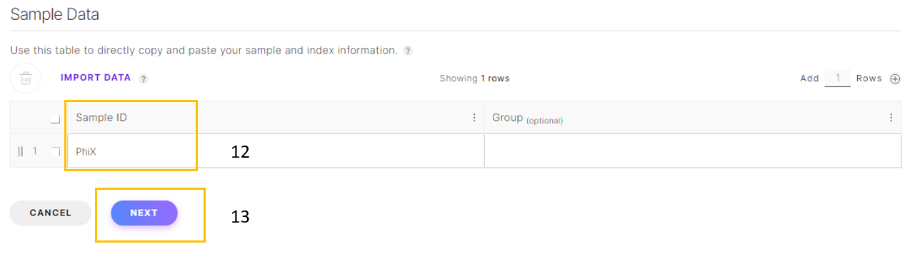 - For Index Reads, select No Index. PhiX does not contain index adapters so it will not successfully sequence through index reads.